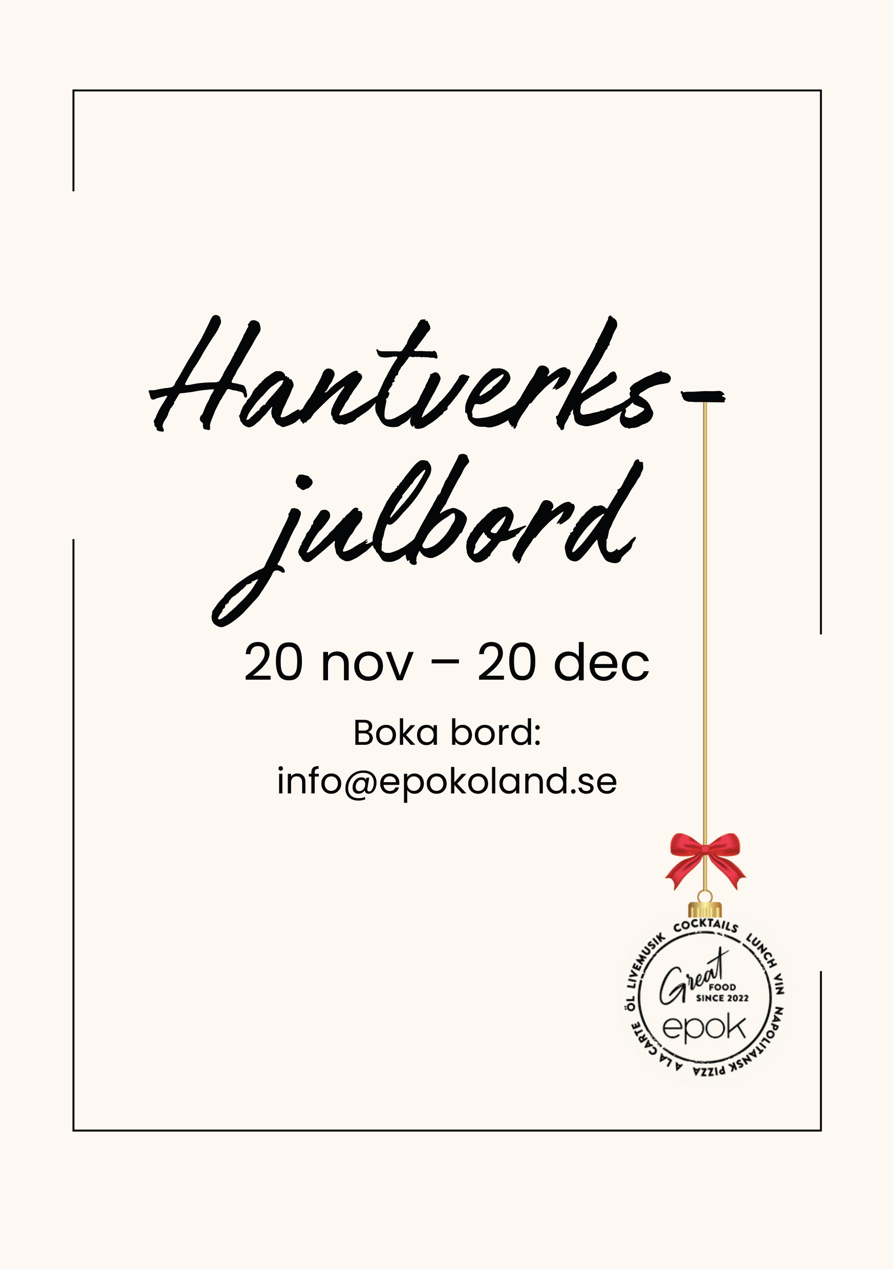 Missa inte att boka plats till vårt fantastiska julbord! Boka på: info@epokoland.se